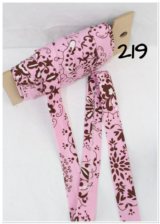 Bias Binding (Tape) 25mm, Cotton, Single Fold, pink print, patterned. Fusible iron on available.