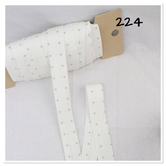 Bias Binding (Tape) 25mm, Cotton, Single Fold, white and crosses. Fusible iron on available.