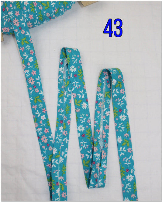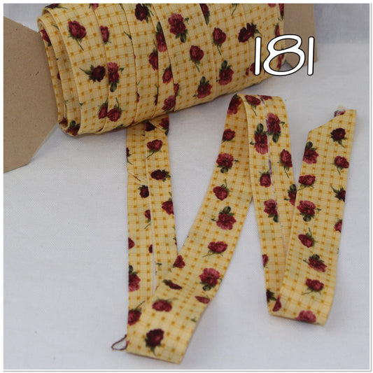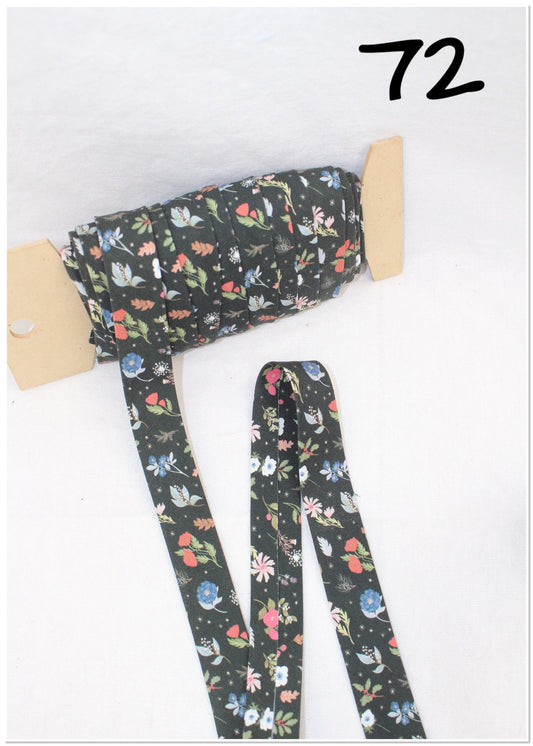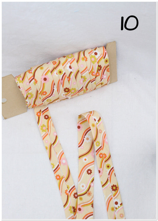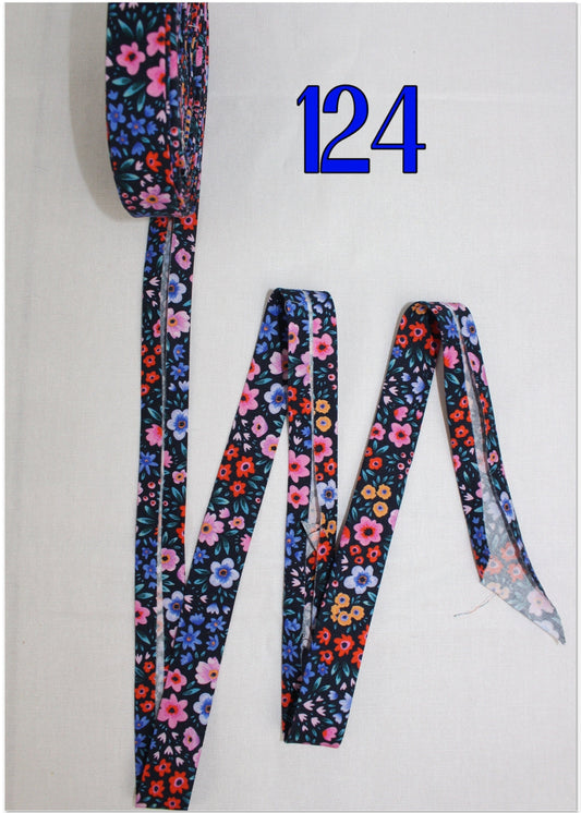 Bias Binding (Tape) 25mm, Cotton, Single Fold, floral blenders. Fusible iron on available.