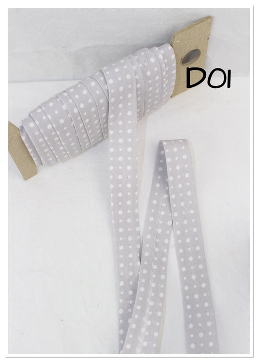 Bias Binding (Tape) 25mm, Cotton, Single Fold, white dots. Fusible iron on available.